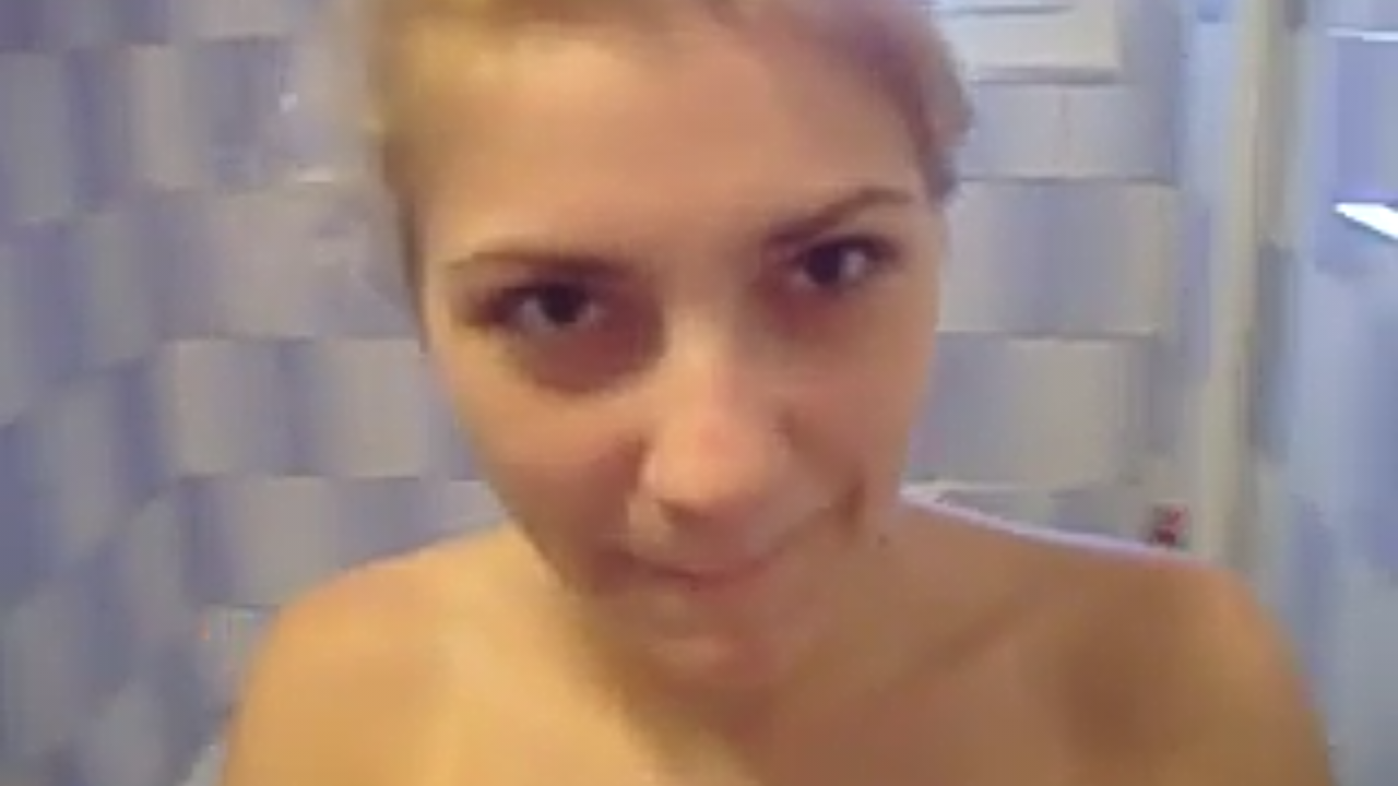 Блондиночка сосёт член после принятия душа.