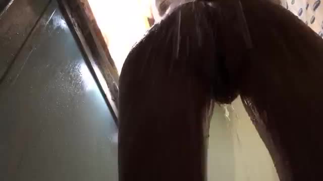 Хороший ракурс выбран для подглядывания, снизу вид аж возбуждает, ножки, писечка, холмики грудок и падающие струи воды!