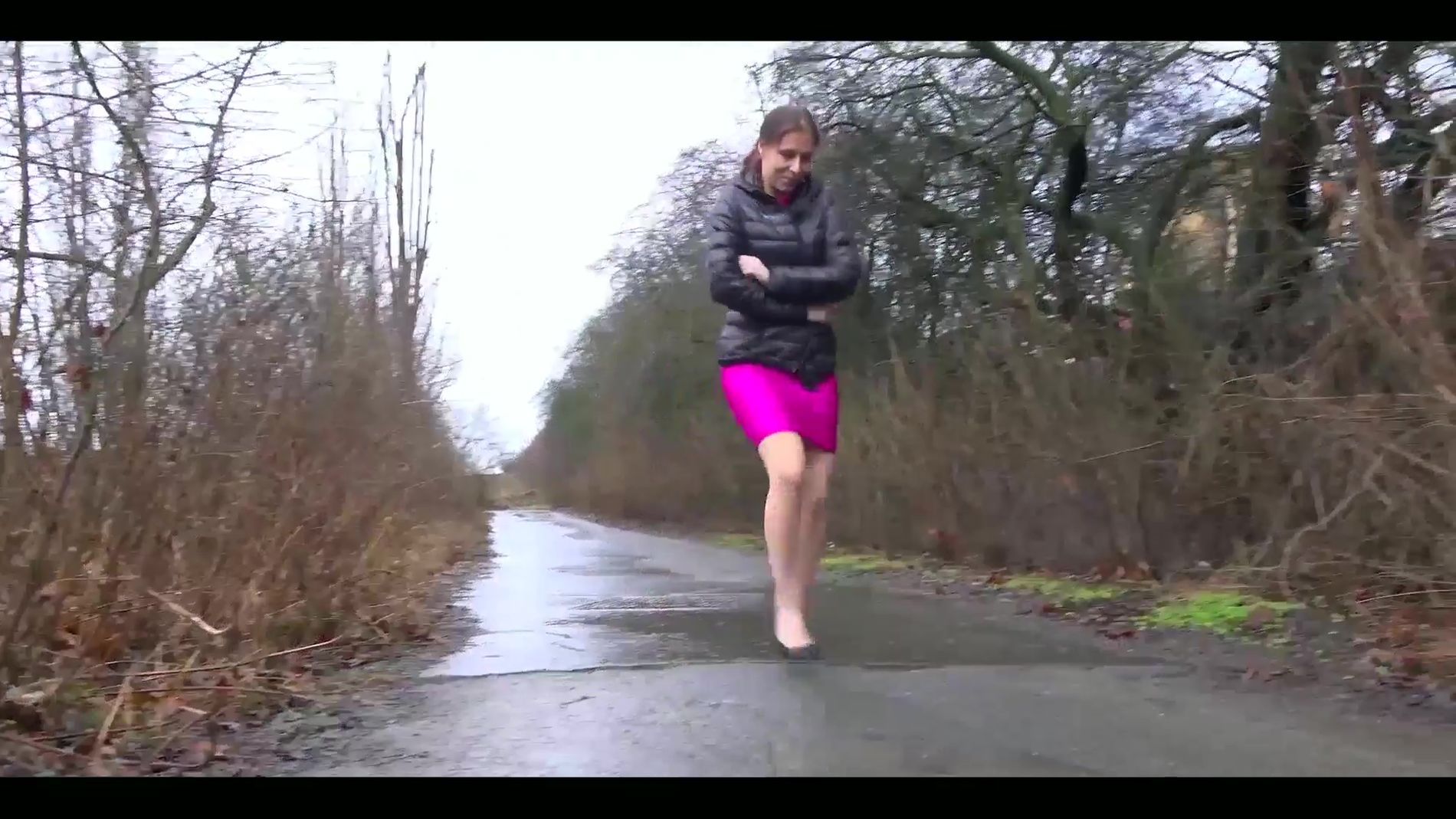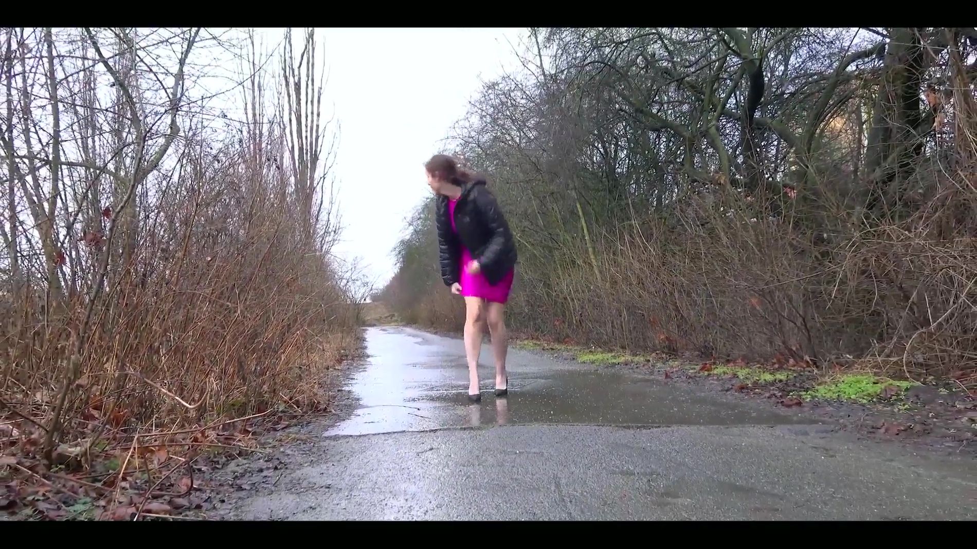 Фигуристая самочка на каблучках перебрала пивка и не удержалась - сделала смачную и эротичную струйку прямо посредине дороги! Картинный писс фигуристой девушки с крупным планом её бритой щелки. Всем - приятного просмотра!