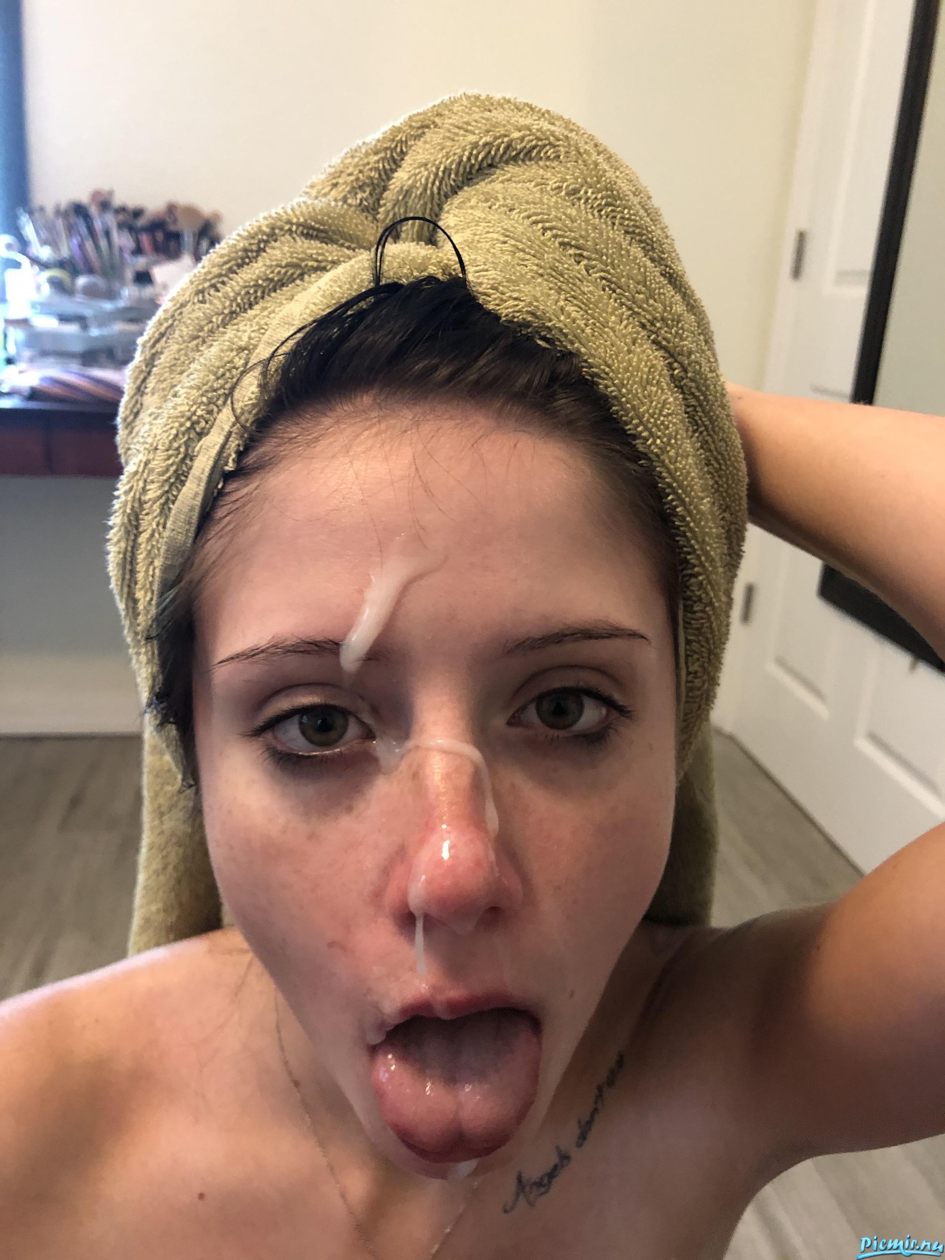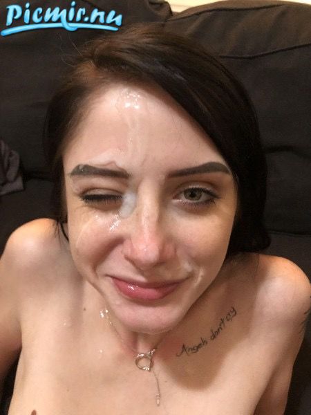 Дополнительная часть фото брюнетки, получившей сперму на личико