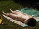 Загорает на поляне в лесу, предпочитая тишину и спокойствие.