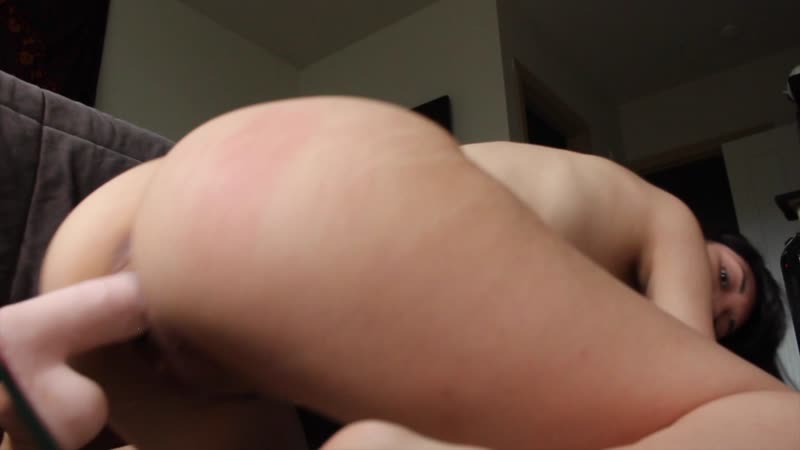 опять отсасывает искусственный член, а потом скачит на нем