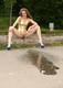 Девка в золотом платье могла бы выиграть золотую медаль по мощности струи и размеру лужи