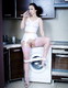 Сидя на стиральной машине она отлично показала свою писечку.