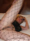 красотка демонстрирует свою киску сквозь колготки с крупной сеткой.
