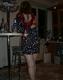 Волосатый лобок из под платица интригующе выглядывает.