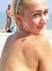 Она загорает на пляже топлесс