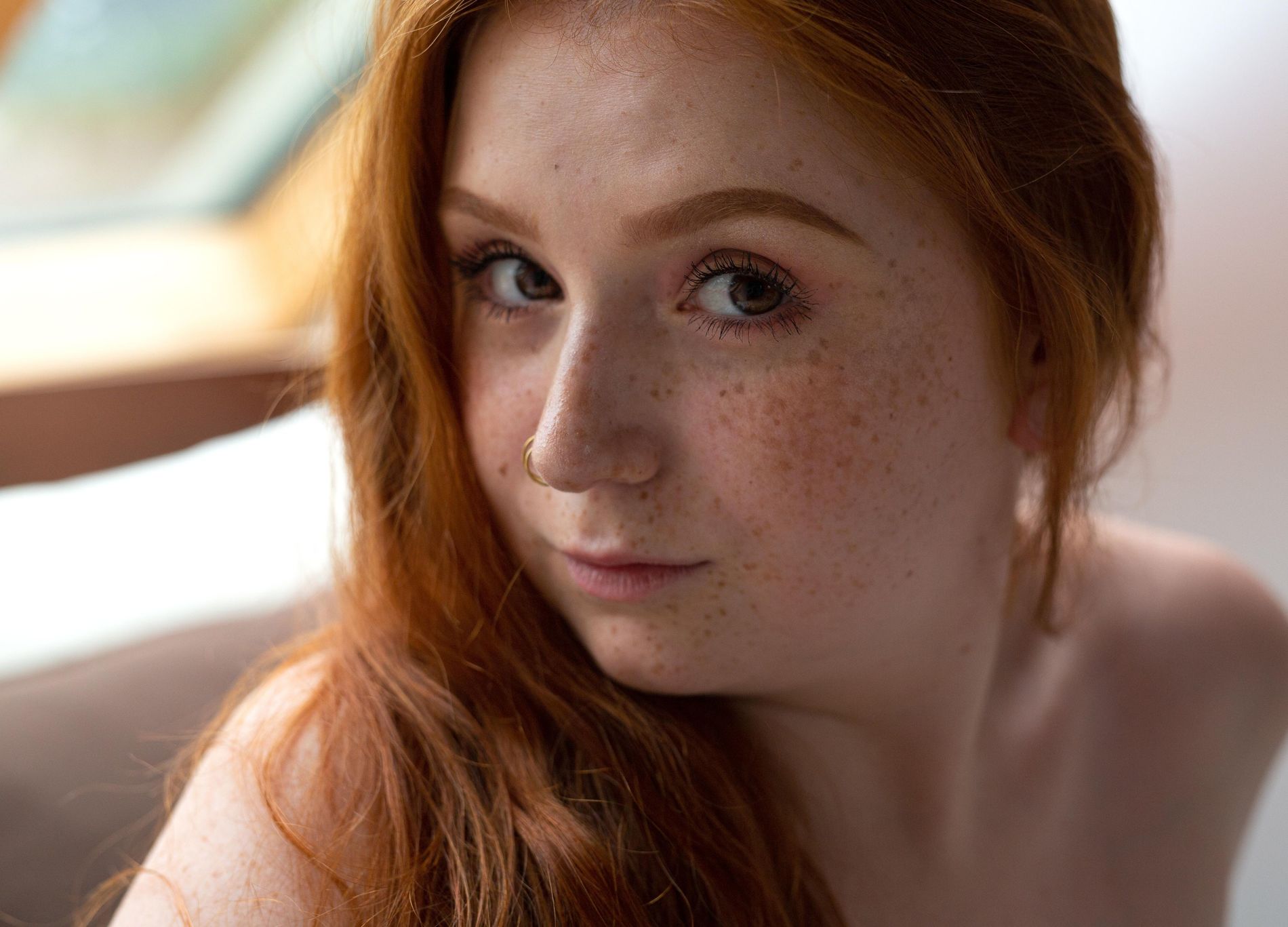Более откровенные фото рыжика плюс веснушки крупным планом на лице.