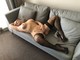 Удачно расположилась на сереньком диванчике