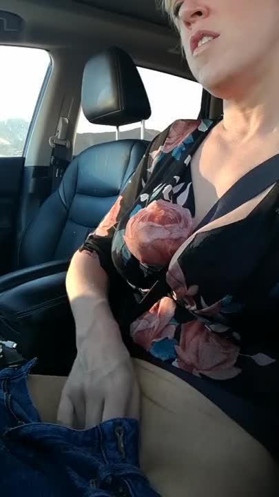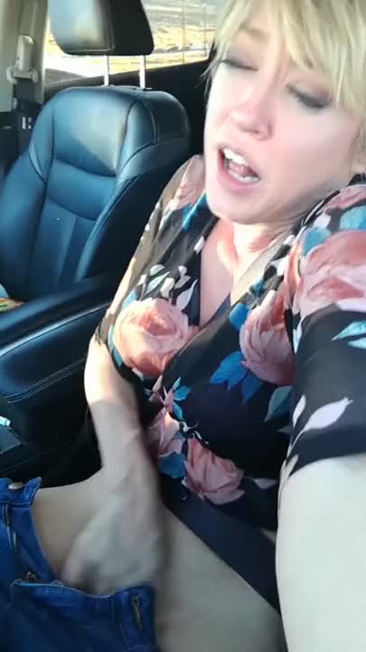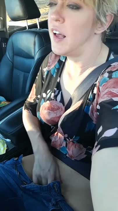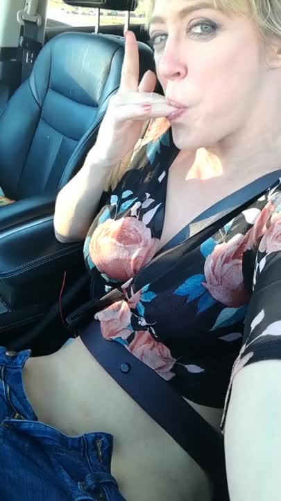 Naughty milf Dee rubbing her pussy and having an orgasm in her car.