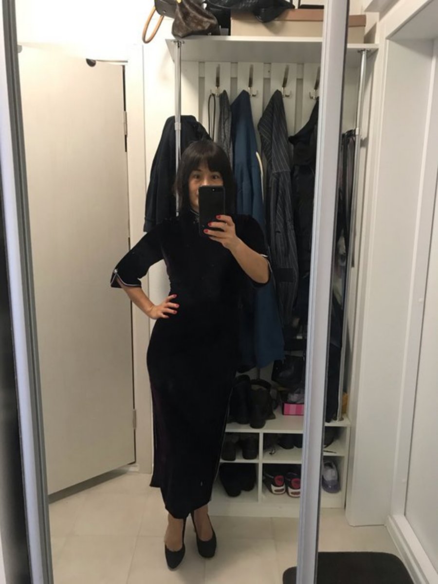 стройненькая женщина, красиво смотрится в платье и без
