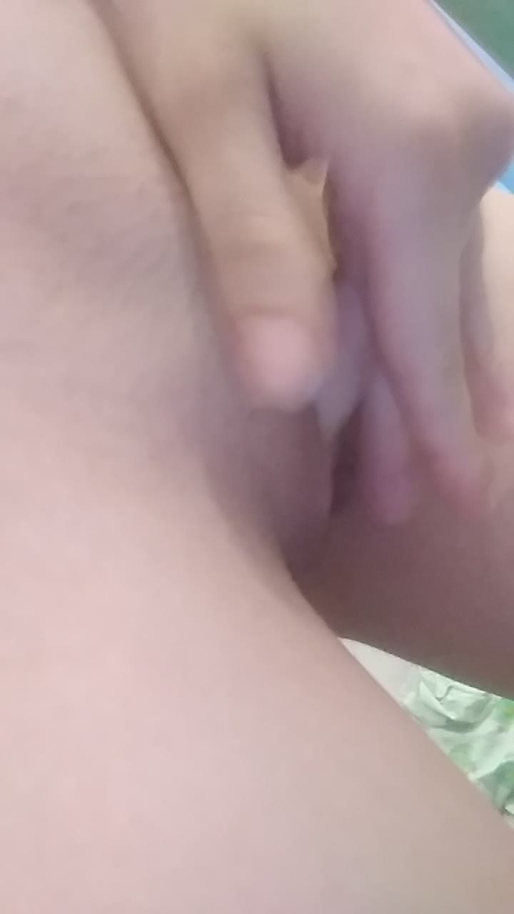 Саша обожает делать селфи на камеру, слегка мастурбировать при этом показывая свою бритую узкую щелку