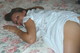 позирует и балуется самотыком на кровате.