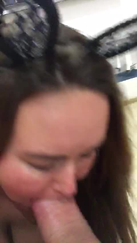 Милая жена с ушками страстно отсасывает