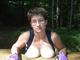 И снова большегрудая красотка демонстрирует себя дома и на природе.