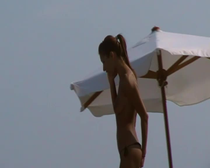 Девушка с красивыми сиськами рассказывает мужу, как ей одиноко на пляже ...