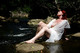 Красивые снимки привлекательной рыжей женщины кайфующей позируя на речке!