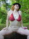 Оригинально шляпой прикрыла свой рыжий чубчик.