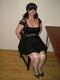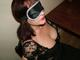 демонстрирует себя в сексуальном наряде прикрыв своё личико маской.