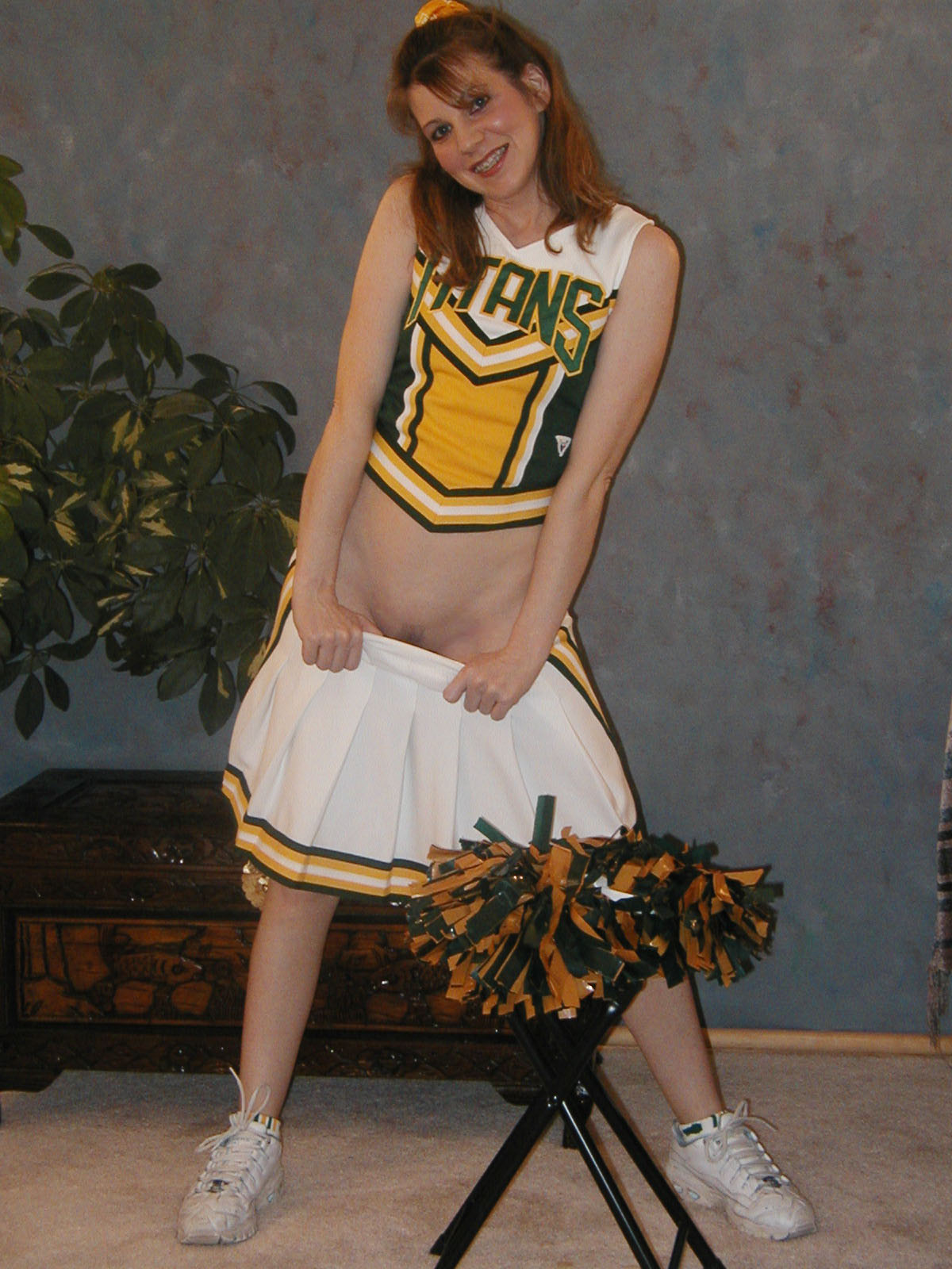 Милая дама красиво и сексуально позирует в костюме черлидерши, радуя своего мужа.