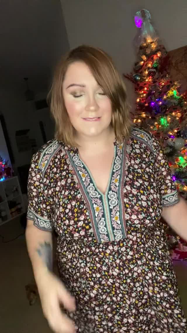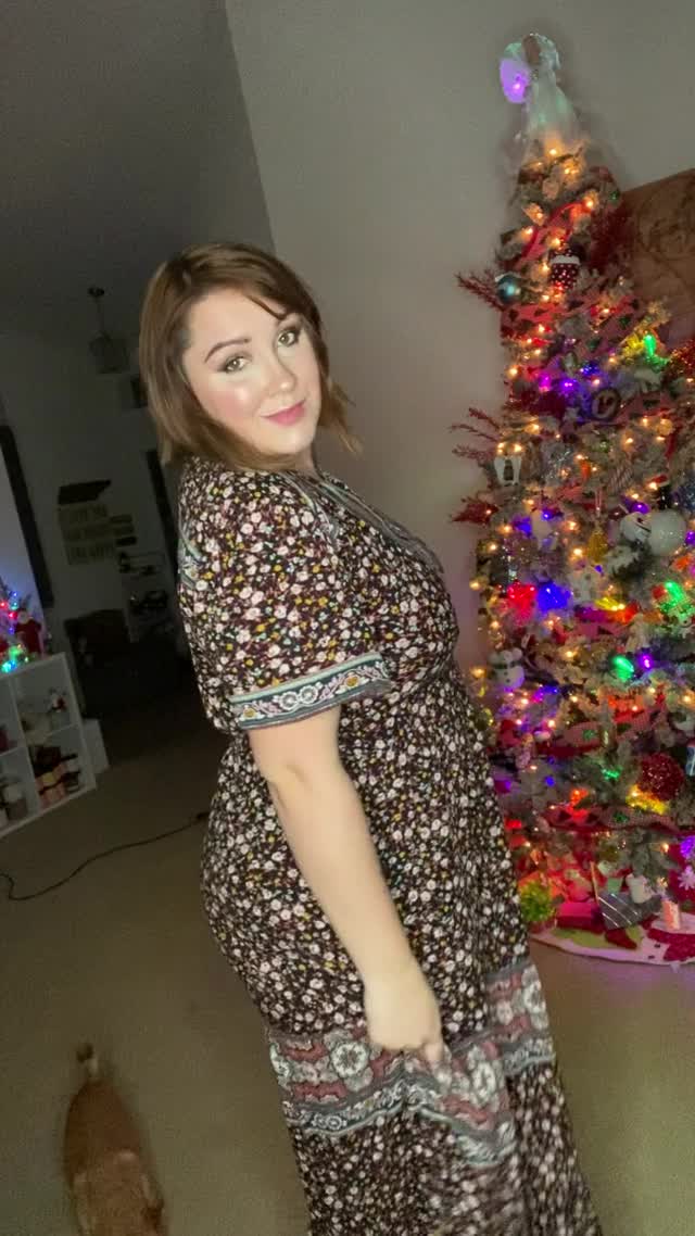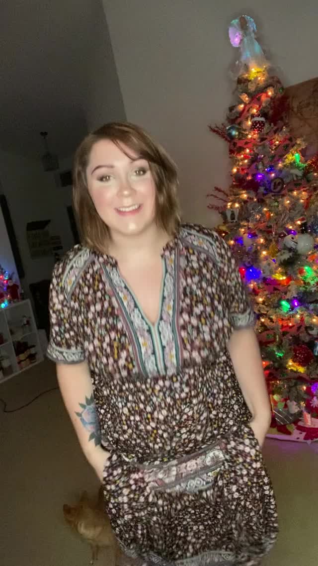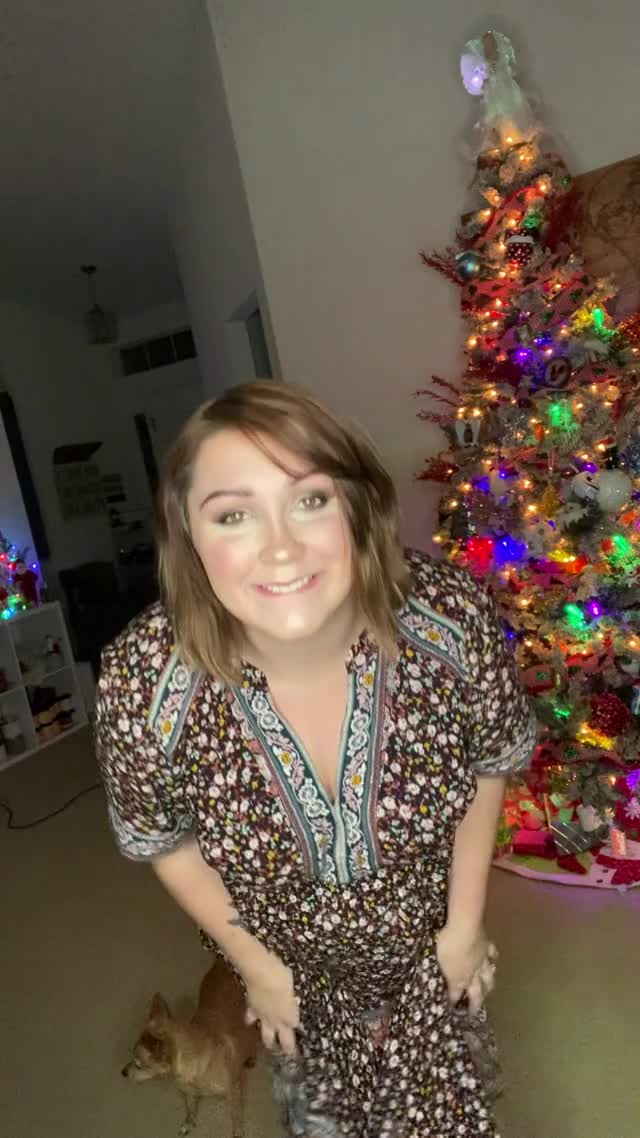 Красивая и милая женщина сделала поздравление для всех мужчин перед уже поставленной дома ёлкой.