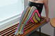 демонстрирует свои весьма оригинальные колготки и чулочки
