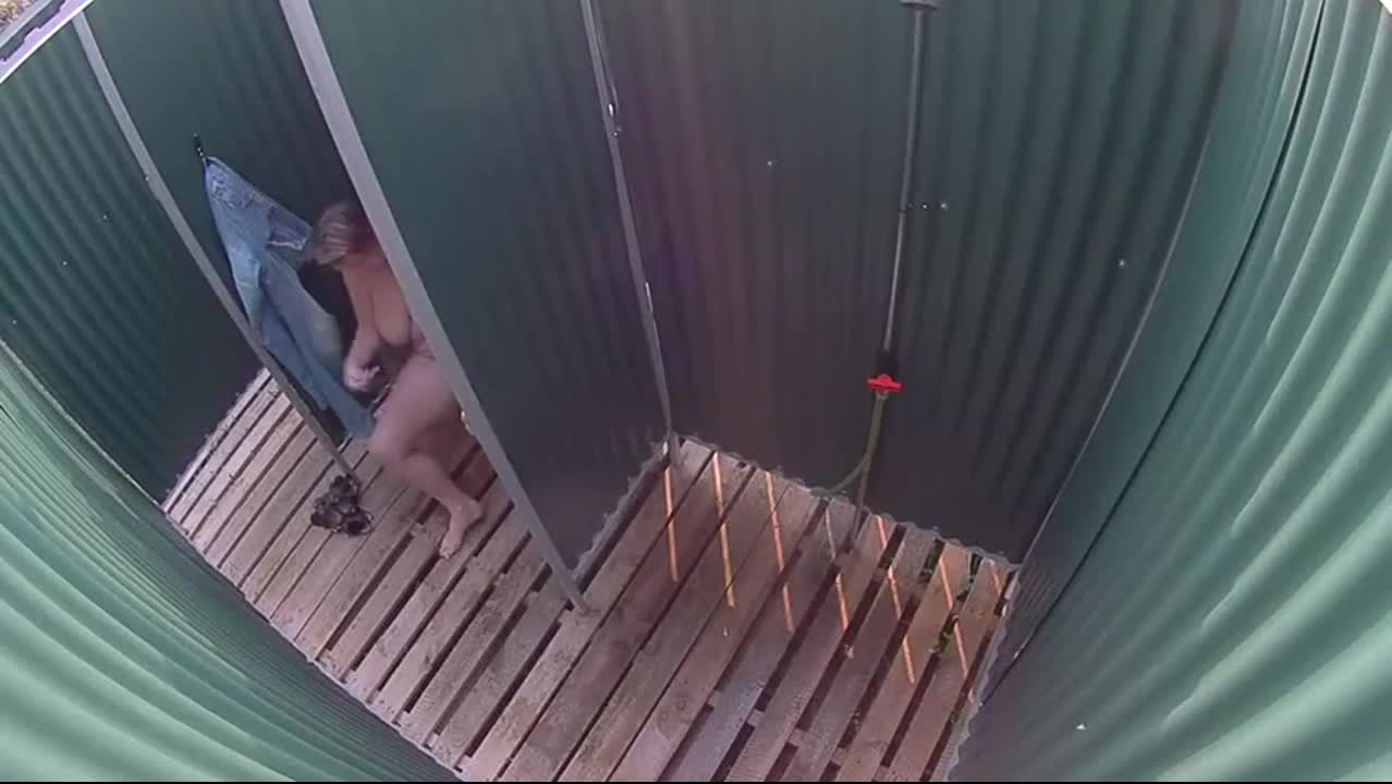 Пышная дамочка в возрасте подбривает свою пизду в кабинке для переодевания