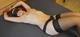 позирует лёжа на кровати с завязанными глазами и в наручниках показывая свои прелести
