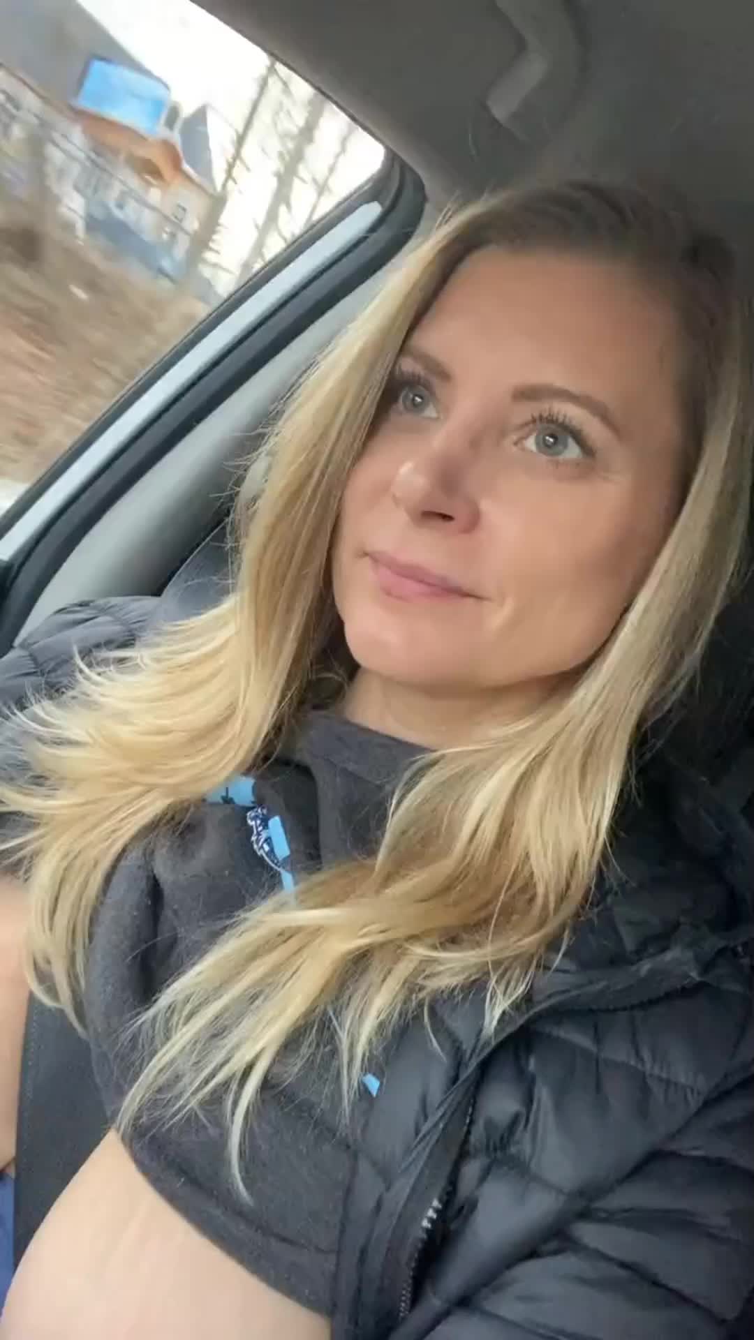 В машине оголила сиськи
