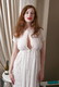 Красивая рыжеволосая женщина позирует , постепенно снимая ночнушку, грудь шикарна