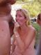 зрелая дамочка ублажает члены мужчин на природе и получает сперму в на лицо в награду