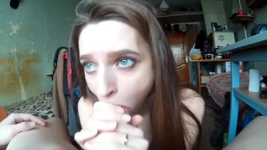 Печальный минет от красотки с голубыми глазами