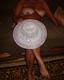 И снова загорелая дамочка продолжает радовать глаз фотографа. Позирует в трусиках и со шляпой.