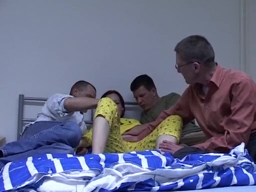 Худенькая брюнеточка с короткой стрижкой ублажает своим ротиком трех дебелых и похотливых гансов, а те и рады стараться пощупать девушку во всех местах и засунуть ей свои приборы в рот по самое не балуй! Хотя... судя по выражению лица этой красотки, она совсем не против того, что делает. А мужики-то как довольны! Приятного просмотра.