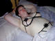 Не молодая, пышная женщина в эротическом белье в домашней фото сессии