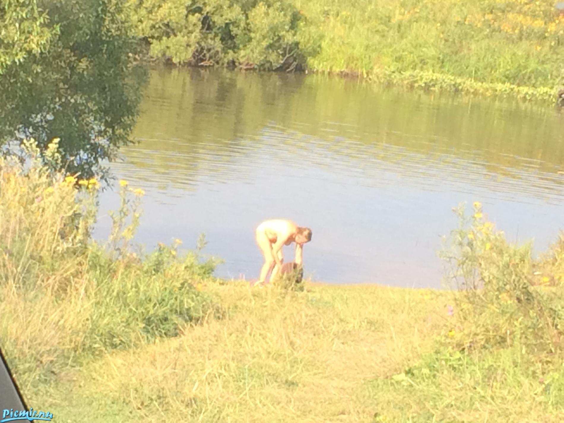 Приехали на рыбалку, а тут Афродита выходит из воды. Для её лет хорошая фигура, и что притязательной ничуть не смутилась, хорошая тётенька.