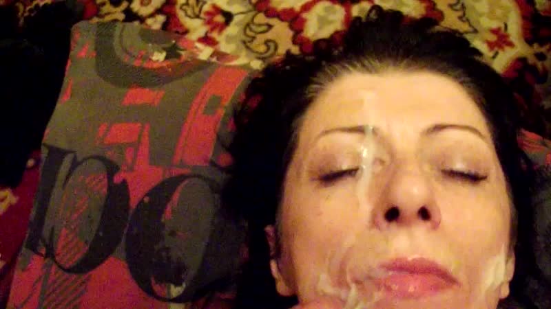 хорошо залил лицо старой сучки спермой и размазал членом!