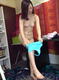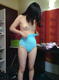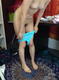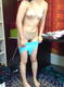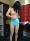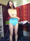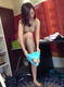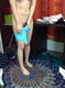 снимает белые трусики, одевает голубой боди