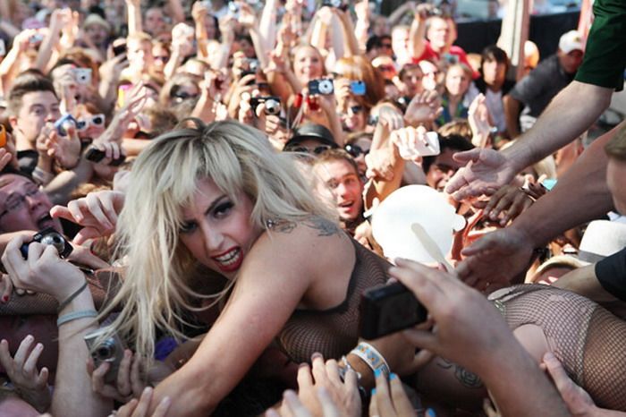 почти полностью голая леди гага прыгнула со сцены в толку людей