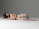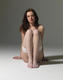 стройная в беленьких чулках голая на полу позирует