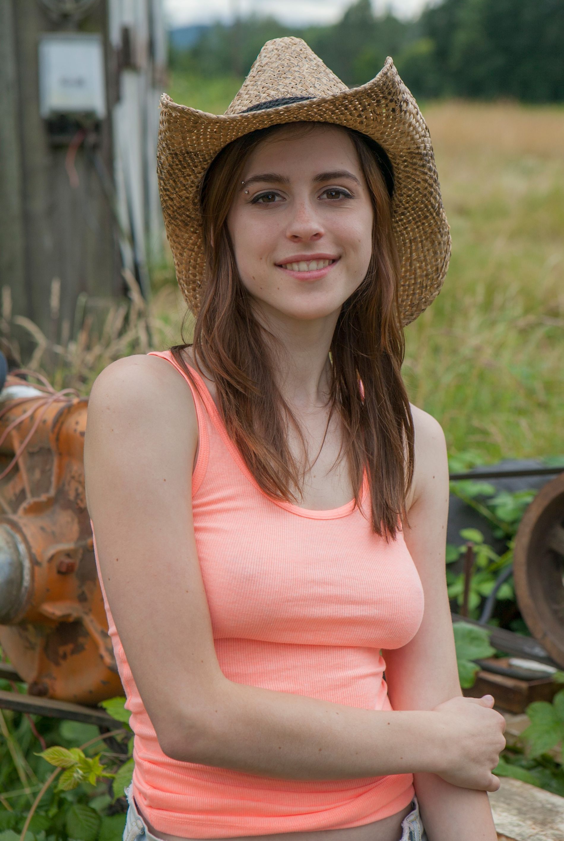 Девушка Ева позирует на ферме
