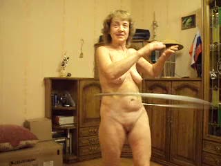 Крутя обруч обнажённой она сразу стала намного моложе выглядеть!