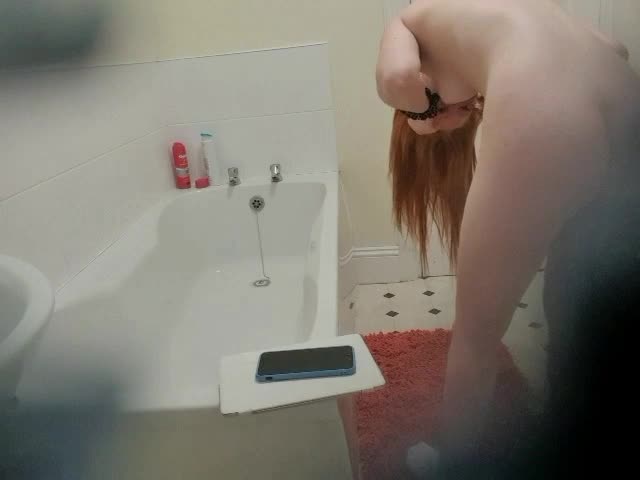 рыжая деваха попала на скрытую камеру когда была в ваной комнате