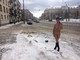 Отчаянная девушка Аленушка, в такуюстужу и в неглиже по снежному городу, смело.