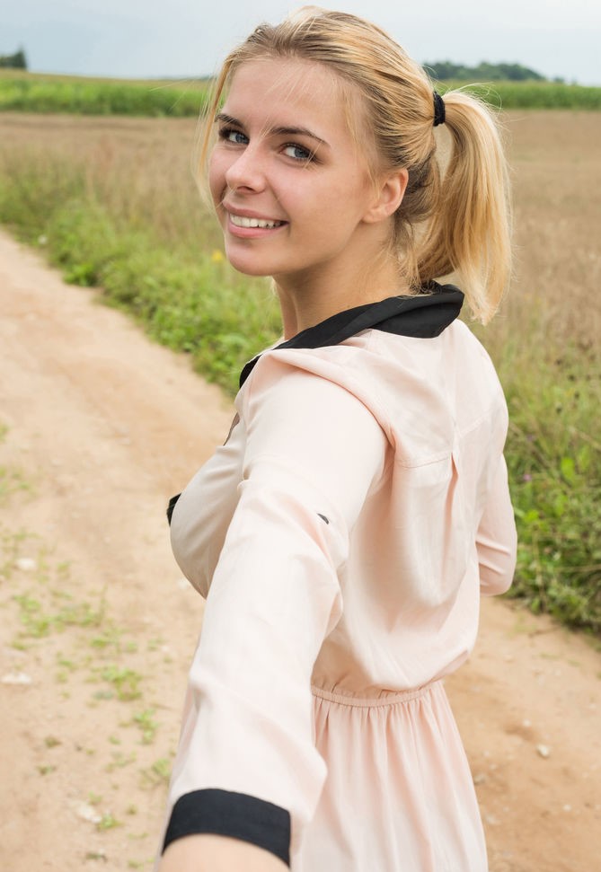 Елена полностью обнажается на фермерском поле