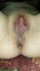дама демонстрирует свою киску с вытекающей из неё спермы.