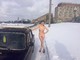 Зимой на жигулях и в босоножках, прикольно. Прям снежная королева.