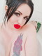 Толстая пирсингованная кукла с надутыми губами в яркой красной помаде!