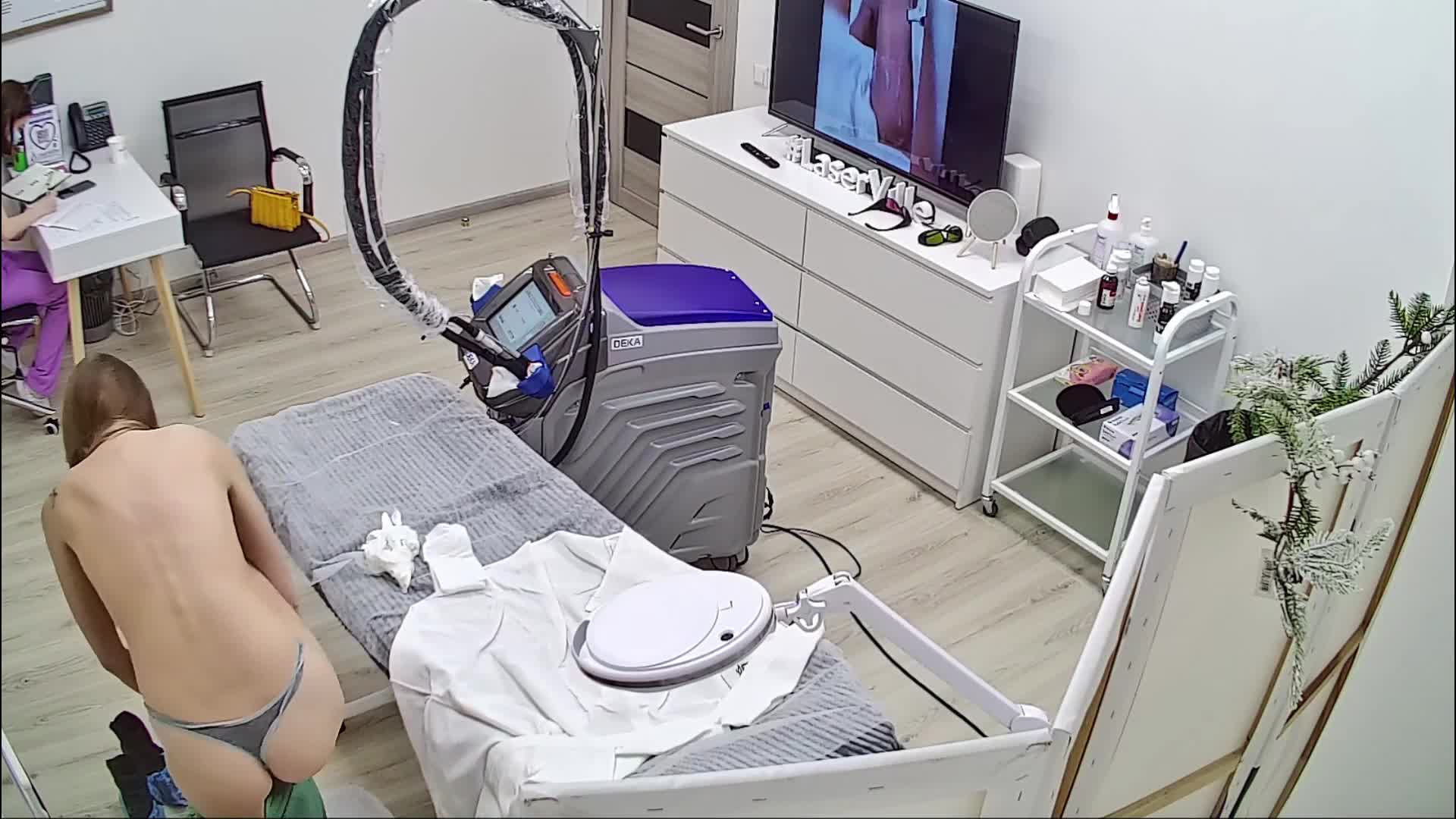 молодой красивой девушке делают лазерную эпиляцию писи и попы