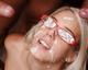 Очень милая девочка в очках обрабатывает своим ротиком сразу 4 члена, которые впоследствии одаривают ее мордашку обильным слоем спемы